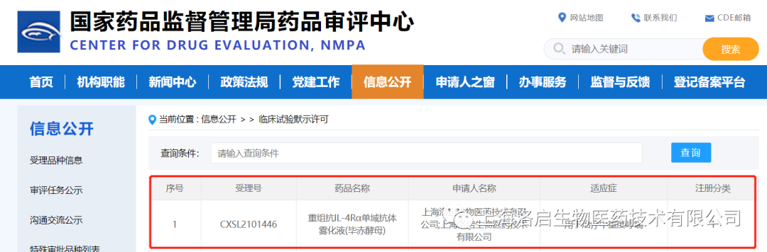 2022年01月26日,中国国家药品监督管理局药品审评中心(CDE)公示,上海凯发K8天生赢家一触即发生物医药技术有限公司一款针对中重度哮喘治疗的核心药物LQ036——重组抗IL-4Rα单域抗体雾化液(毕赤酵母)的临床试验申请(IND)正式取得批准(通知书编号:2022LP00124),从IND受理到获批仅用2个月,此间无发补项。